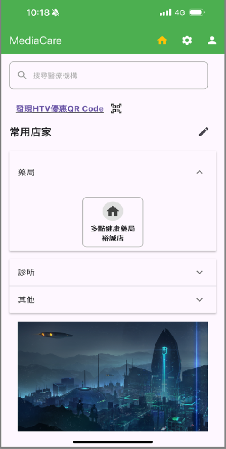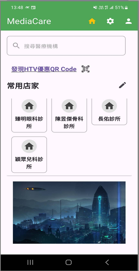 Mediacare APP 結合診所與藥局服務,提供預約掛號、即時叫號、慢箋查詢、健康紀錄與 Beacon 推播等功能,打造智慧化的健康照護體驗。